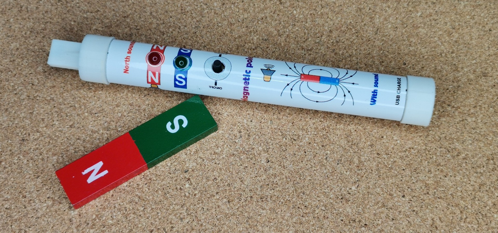 Magnets pole tester .Μοναδική καινοτομία παγκοσμίως με ενδειξη του πόλου N και S , επίσης με ήχο που ειδοποιεί οταν εντοπίζει τον πόλο οποιουδήποτε μαγνήτη με οποιοδήποτε σχήμα και ισχύος και με δυνατότητα επαναφόρτησης της μπαταρίας σε 3 λεπτά για λειτουργία σε περισσότερο απο 1000 ελέγχους μαγνητικών πόλων.